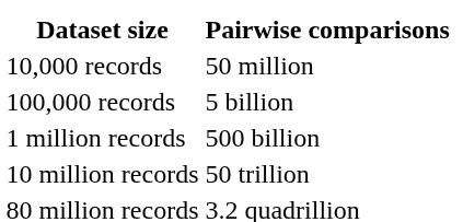This isn't a hypothetical. Enterprise CRM databases routinely exceed a million records. Healthcare patient registries can exceed 10 million. National voter rolls and financial transaction datasets can reach 80 million or more. And this is before cross-source linking, where you need to compare records in dataset A against records in dataset B.