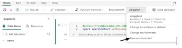 Open your newly created Zingg-Fabric Notebook or download notebook (ExampleNotebook.ipynb” ) from Zingg’s GitHub and upload the “ExampleNotebook.ipynb” to your workspace.
