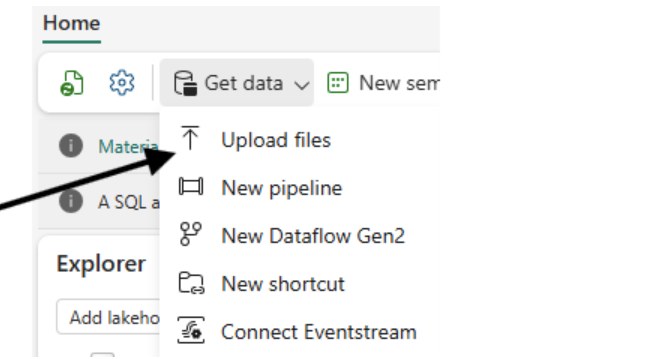 Zingg supports multiple file formats like CSV, Parquet, or JSON. For this example, let’s use a CSV file. You now need to go inside the Lakehouse, click on “Get data,” and upload the CSV file.
